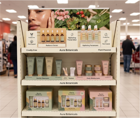 End cap displays are positioned at the end of retail aisles — prime real estate in any store. They attract shoppers from multiple directions and are among the most coveted display placements in modern retail. Custom-branded end caps signal quality and investment to both retailers and consumers.